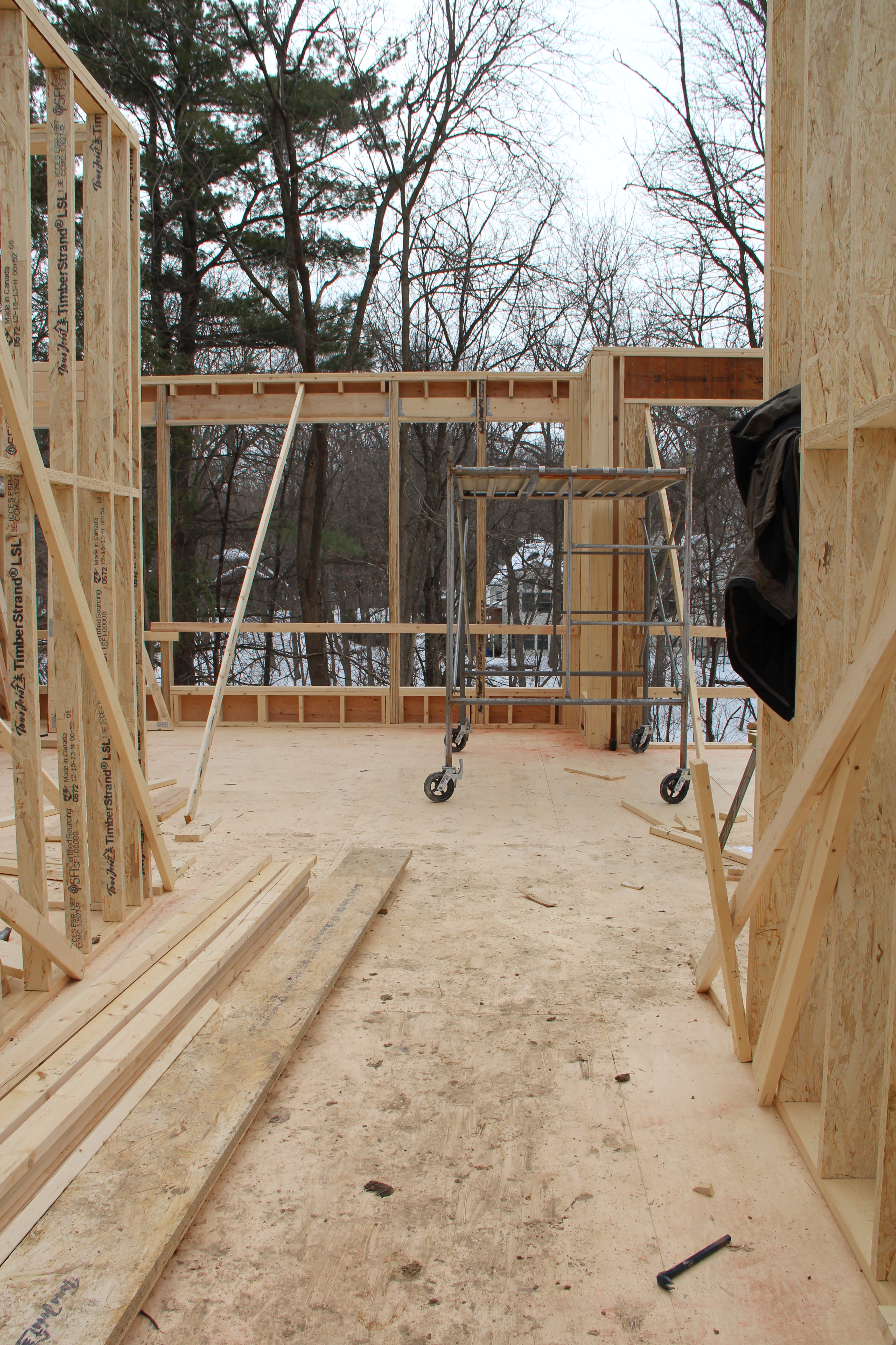 In the meantime, enjoy these photos of our progress. The snow is melting so everything is a muddy mess. But it was great walking through the rooms today