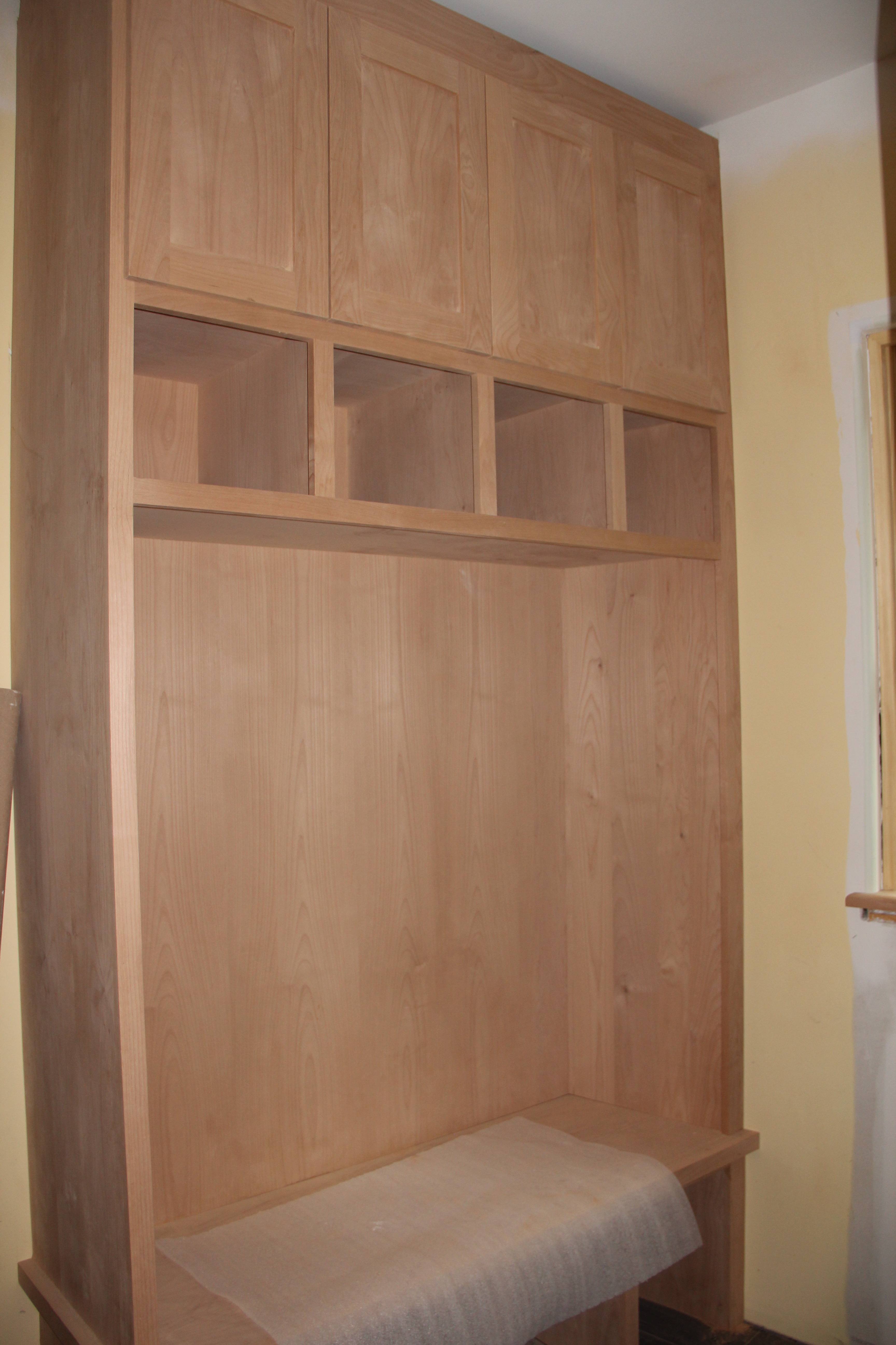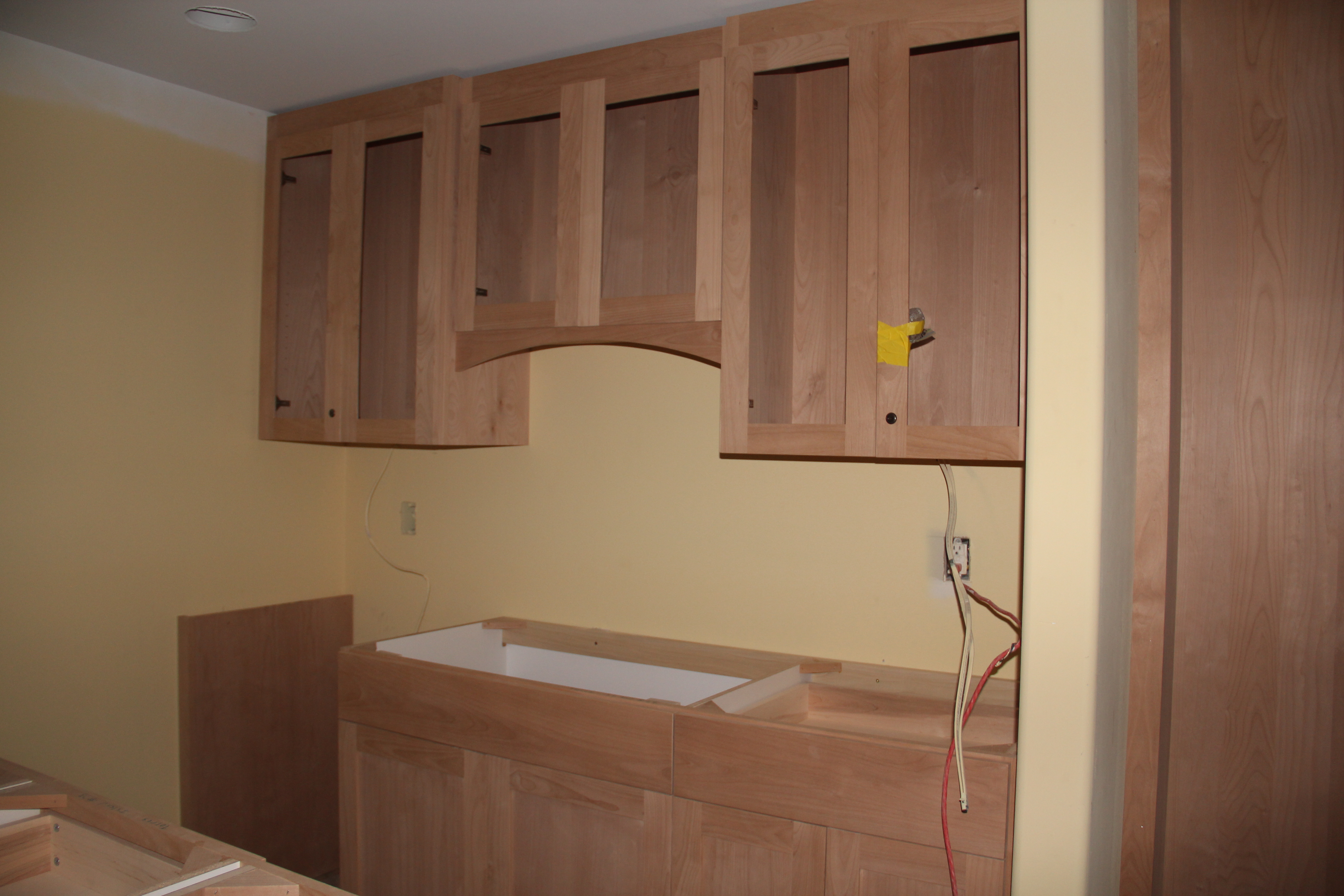 None of the cabinets or floors are stained yet. Like the paint, they go on very late in the process to hide up any scratches that might happen during the last few months of work. Grouting of all tile is done, except for the bar floor. Due to the uneven nature of the brick floor, they want cabinets installed on top of brick then grout will help fill in the gaps to secure it in place and help hide imperfections in the floor.