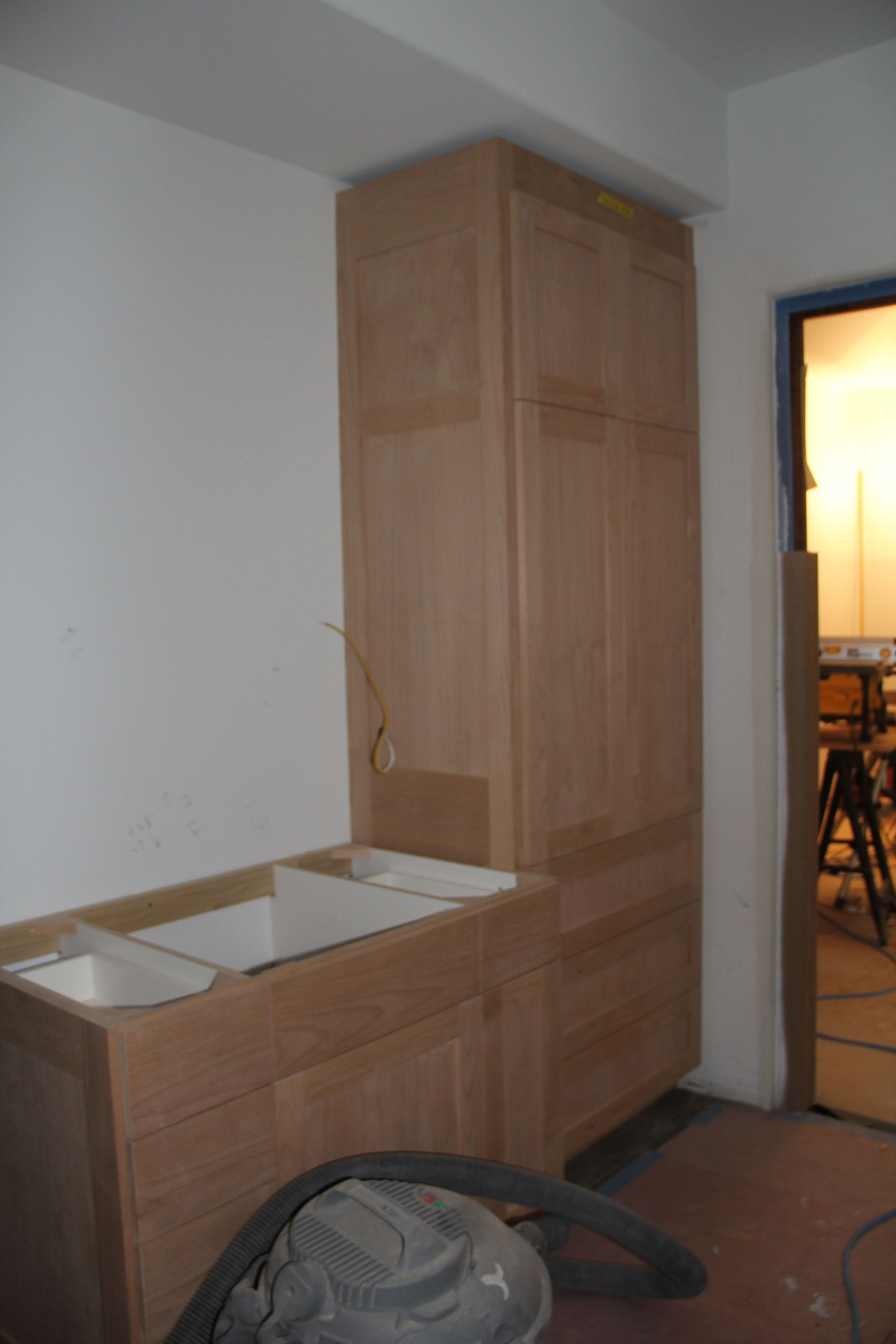 After the holiday weekend, Super Bill seems to be riding the crew to get stuff done. Cabinets and flooring were delivered last week, so the past few days have been all about assembling and placing the cabinets. What a difference! The rooms are feeling more like living spaces, not just empty boxes. The plan is to get them all installed by Tuesday, so flooring can go in on Wednesday.
