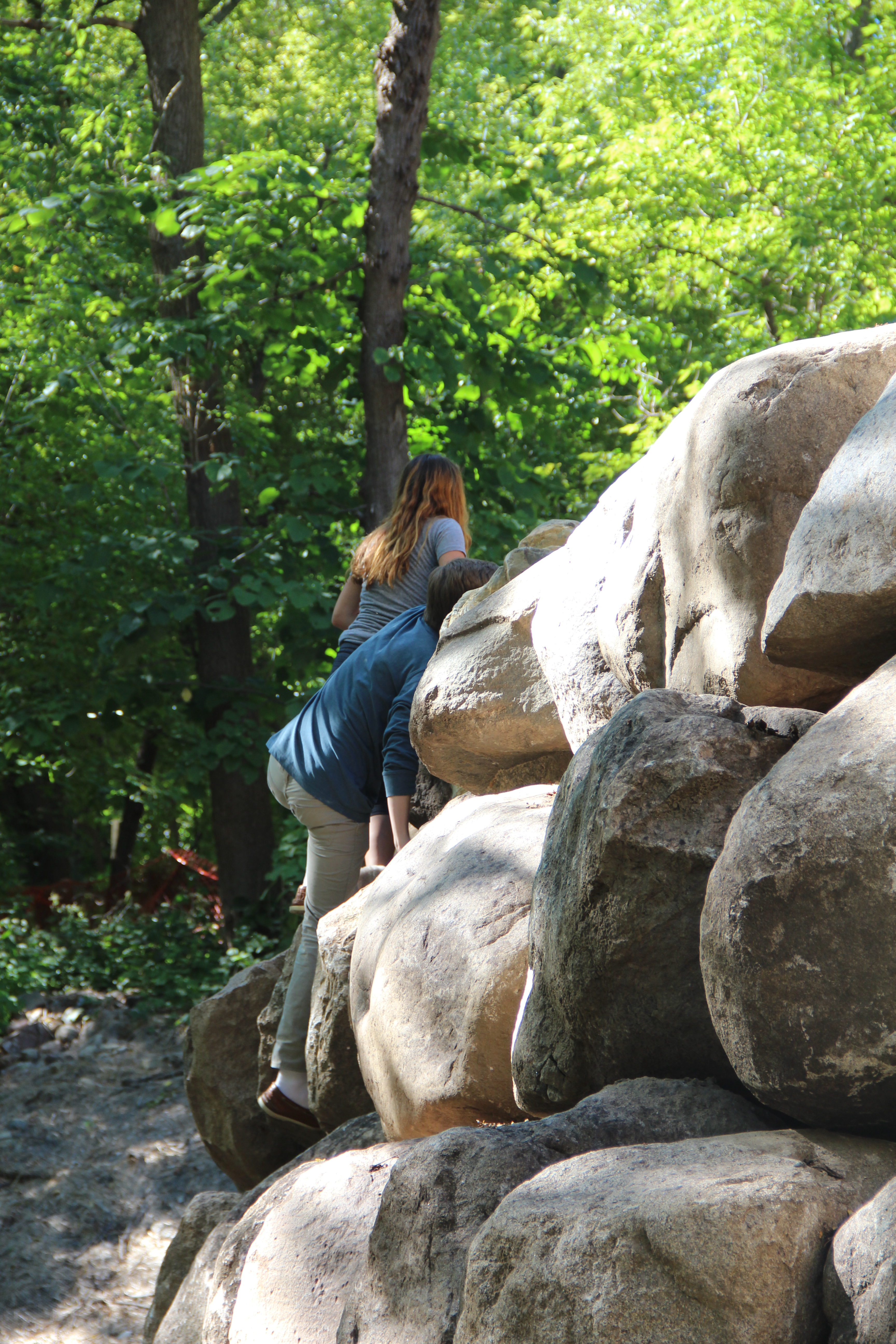 Frankie and her friend Luke scaling the baby Volkswagen-retaining wall. Me? I walk around.