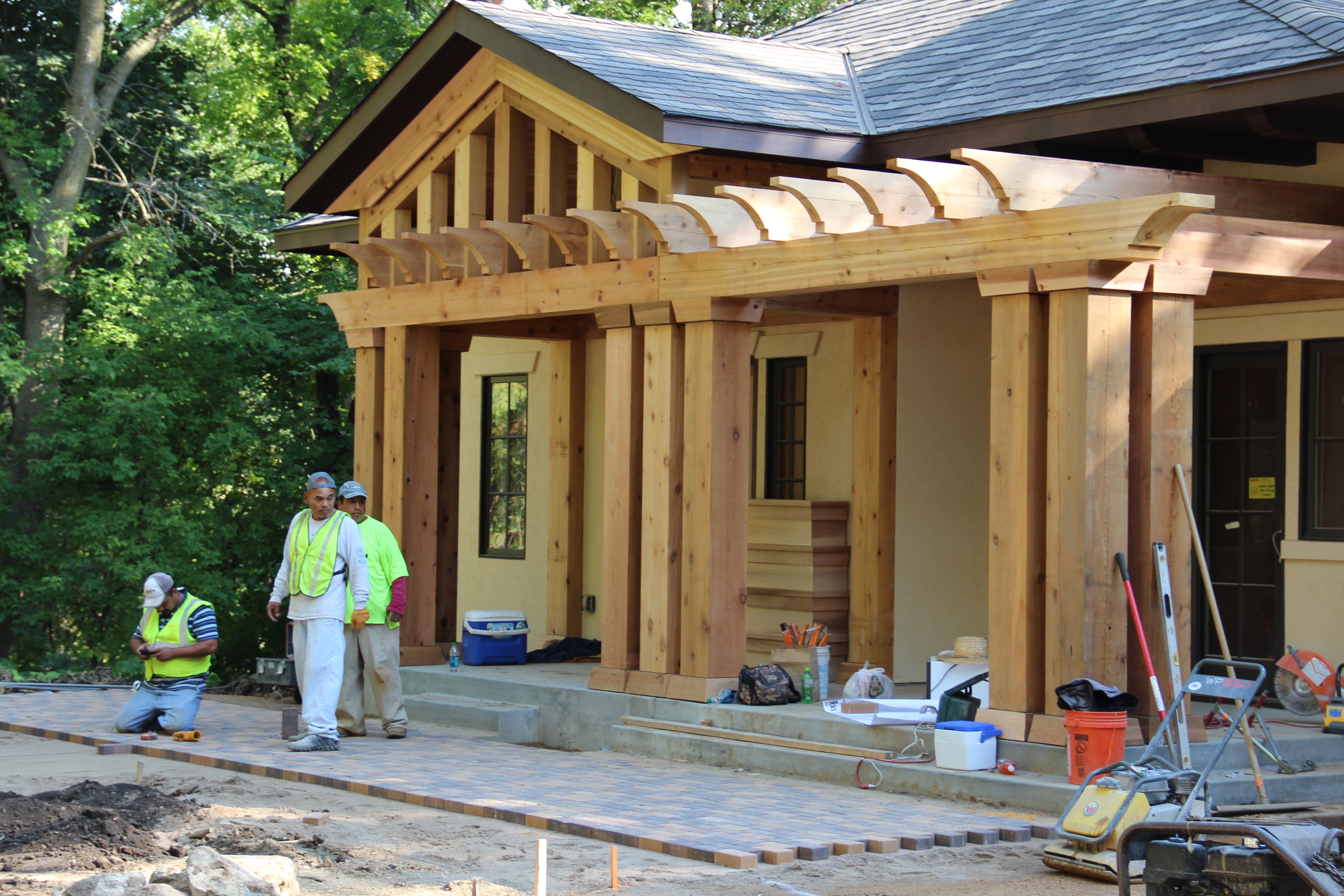 Also on the outside, the pergola gets stained either today or tomorrow! We made some changes to the pergola ad front porch — the cedar beams are beautiful, but there were too many. We will try to find a new use for the beams. Maybe the world’s biggest mail box?
