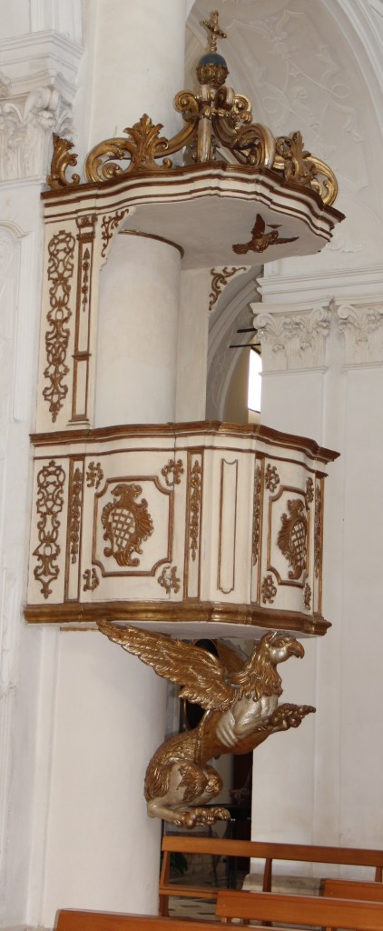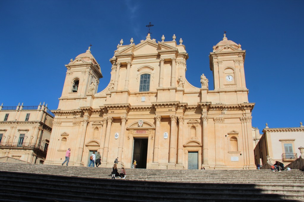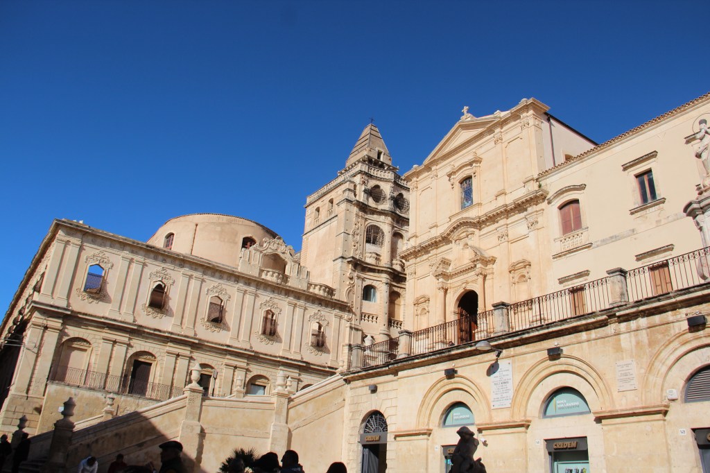 It was a gloriously sunny day to visit a city whose architecture oddly, reminded me very much of the Palace of Fine Arts in San Francisco. This was a city fully destroyed by the earthquakes I mentioned in a previous post, and was rebuilt in a very baroque style, in a much “sunnier” color than the lava buildings of Catania. It also had some hilly areas, meaning that we all took turns “feeling the burn” as we squired HWSNBN around in his wheelchair!