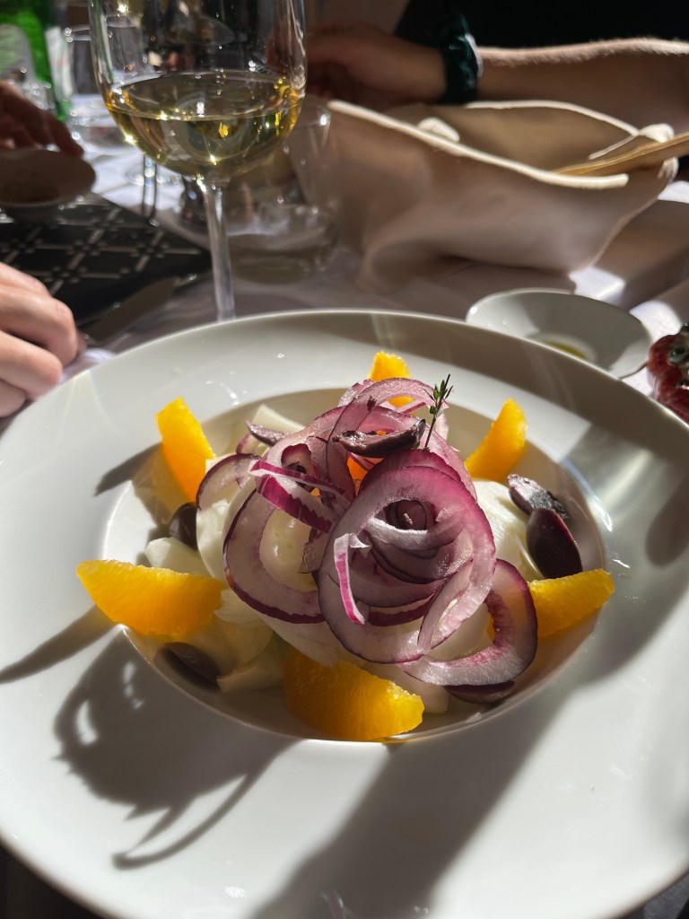 TBH, I really just wanted to sit outside in the sun and have cheese and wine, but he was so excited about we made it happen. Unfortunately, almost every restaurant we tried on Ortigia had several stairs to get into it (I think the land and buildings have sifter over the centuries — or maybe they are built above the street to avoid flooding?). We were pretty disruptive getting in, but folks seemed understand. They politely went about their chic lunches in the brick-walled room, quietly supping wine and looking more fashionable at a simple weekday lunch than I ever would with hours of a prep for a gala. As I observed the other patrons, I realized they were all couples about my age and realized that this was their “post houseguest holiday frenzy” reward lunch. Just the two of them, sipping wine while they discussed all the family drama the had just observed.