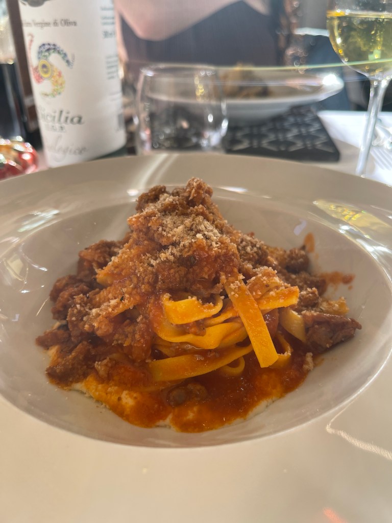 Our last stop on the tour was at Savia, where Mario treated us to more arancini and pastries — and wine, of course. Mario had “American prosecco”: Coca Cola.
