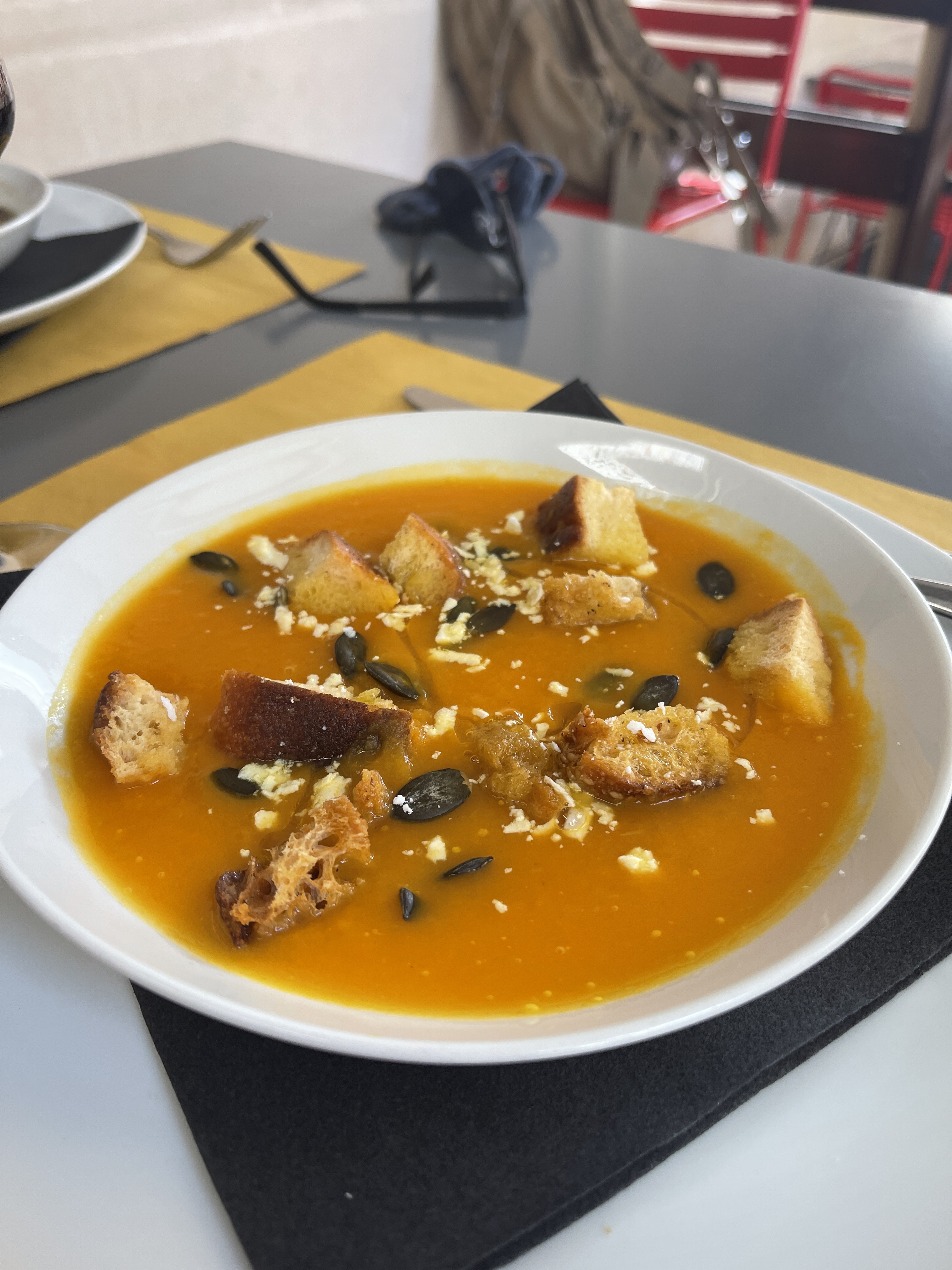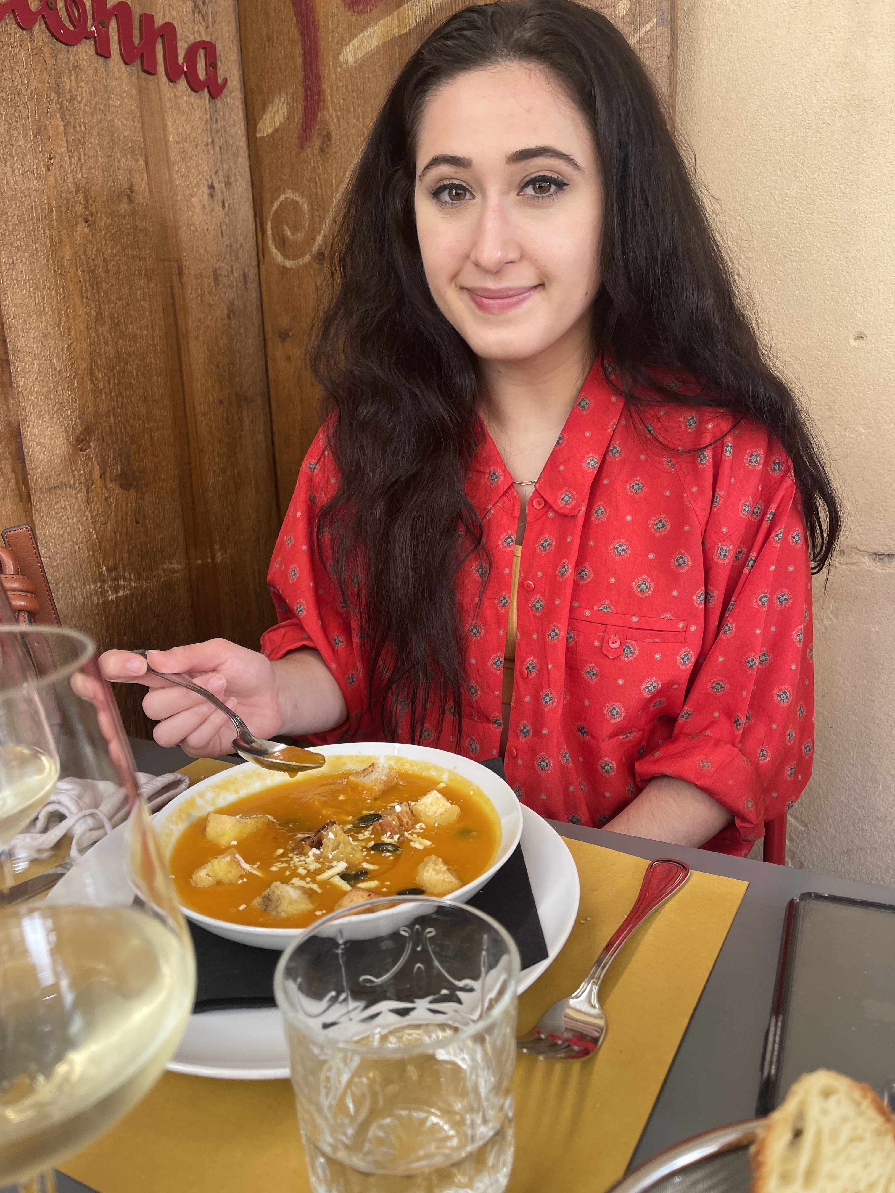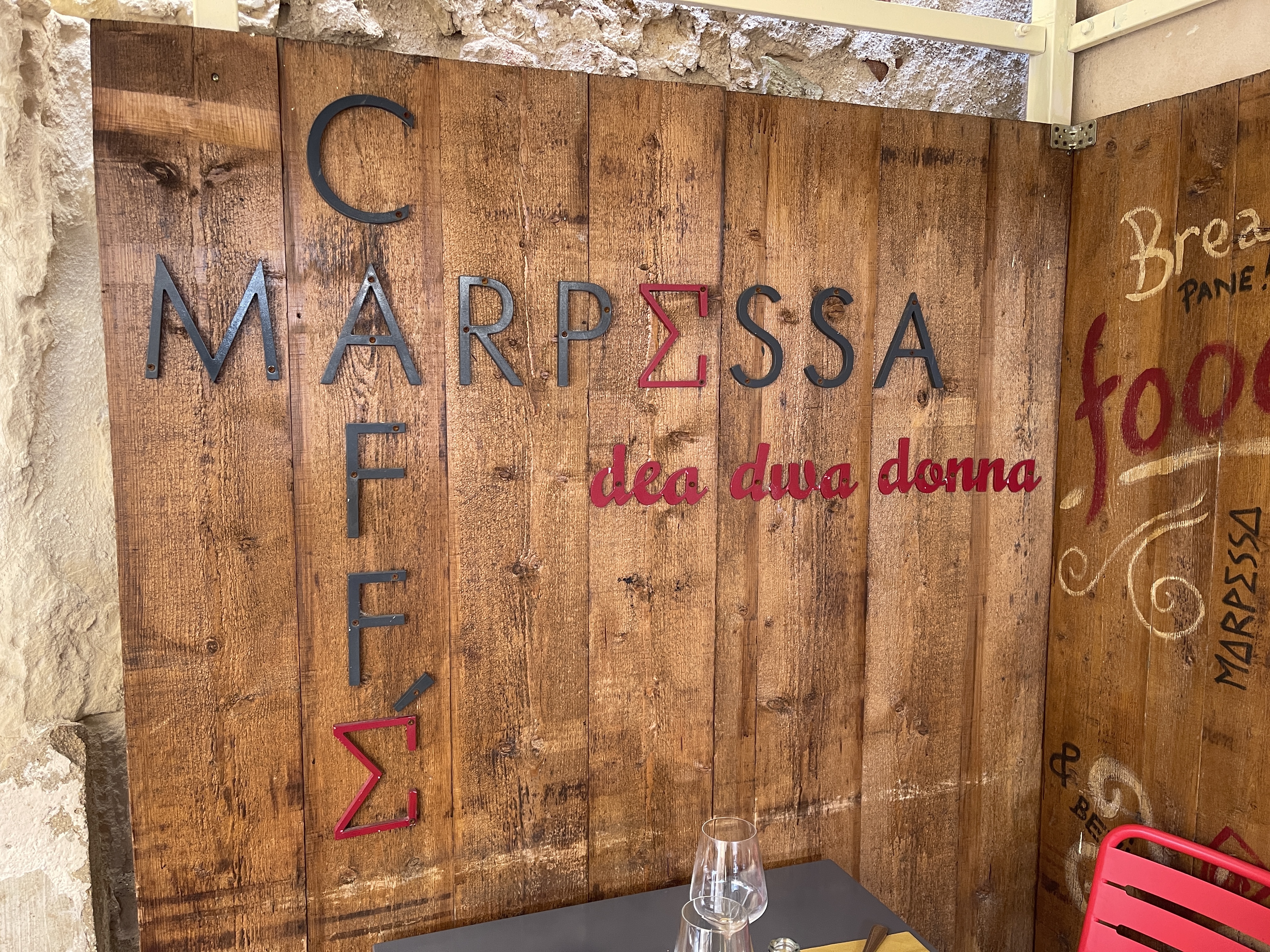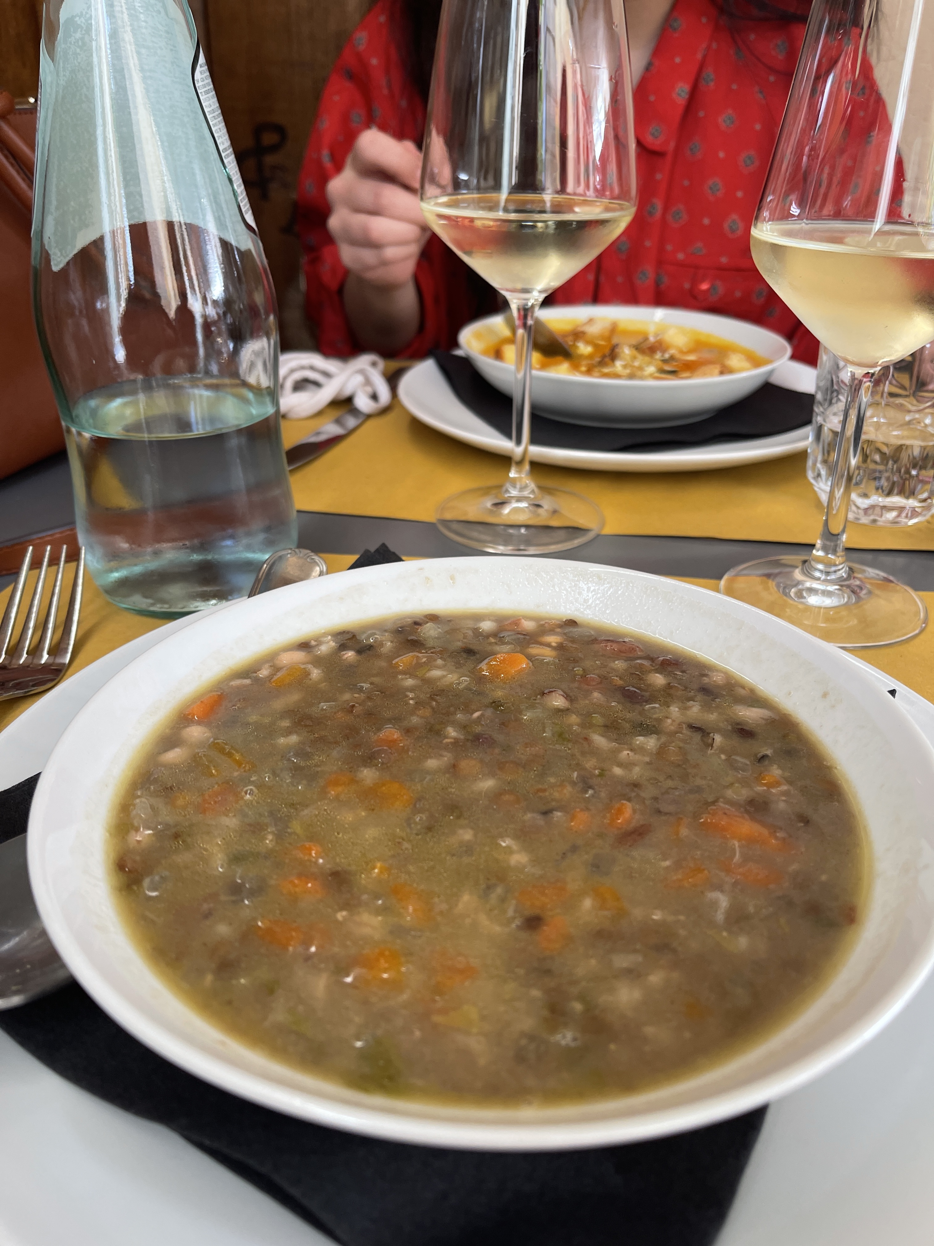 Our guide recommended Caffe Marpessa for lunch. While we weren’t all thrilled with what we ordered to eat (except for taht soup — yum!), the wine was great, and the setting was perfect. It was probably one of our favorite meals for the atmosphere and mood — even if Singer Girl did get in trouble for feeding the prowling cats.