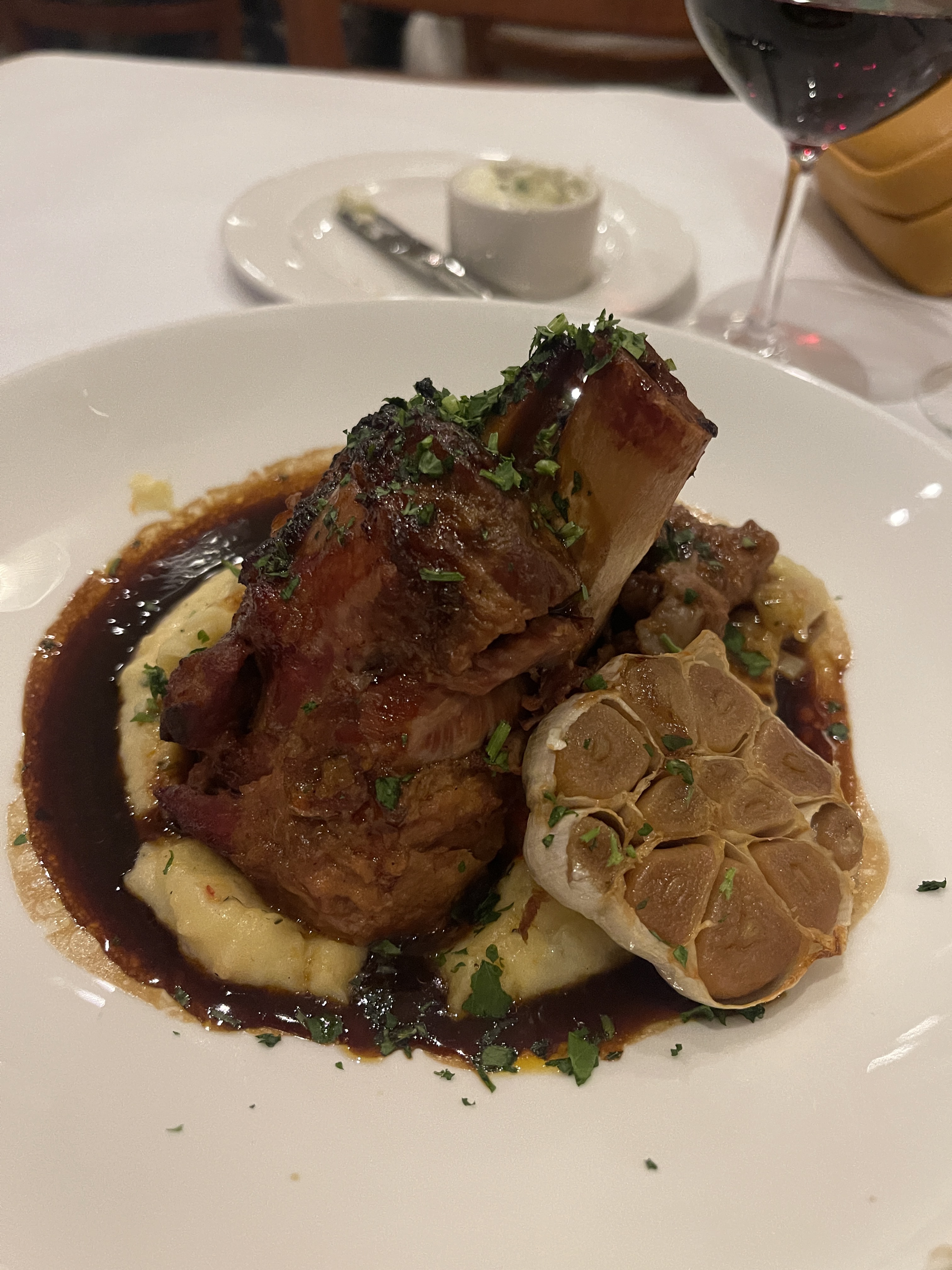 When it arrived, I unpacked and we got to shower and do all the things you take for granted when you have your luggage, lol. We decided to walk to the restaurant for dinner, rather than make the kids try and pick us up (it was tough to do so, as no private cars were allowed on the street front of the hotel). It was drizzly, so my hair was a mess by the time we got there, but it was a riot, navigating cobble stone streets in a wheelchair. I burned off all the days treats for sure, and we joked that it is not a vacation until HWSNBN and I get lost on a “Bataan death march,” as my family likes to call my happy meanderings.
