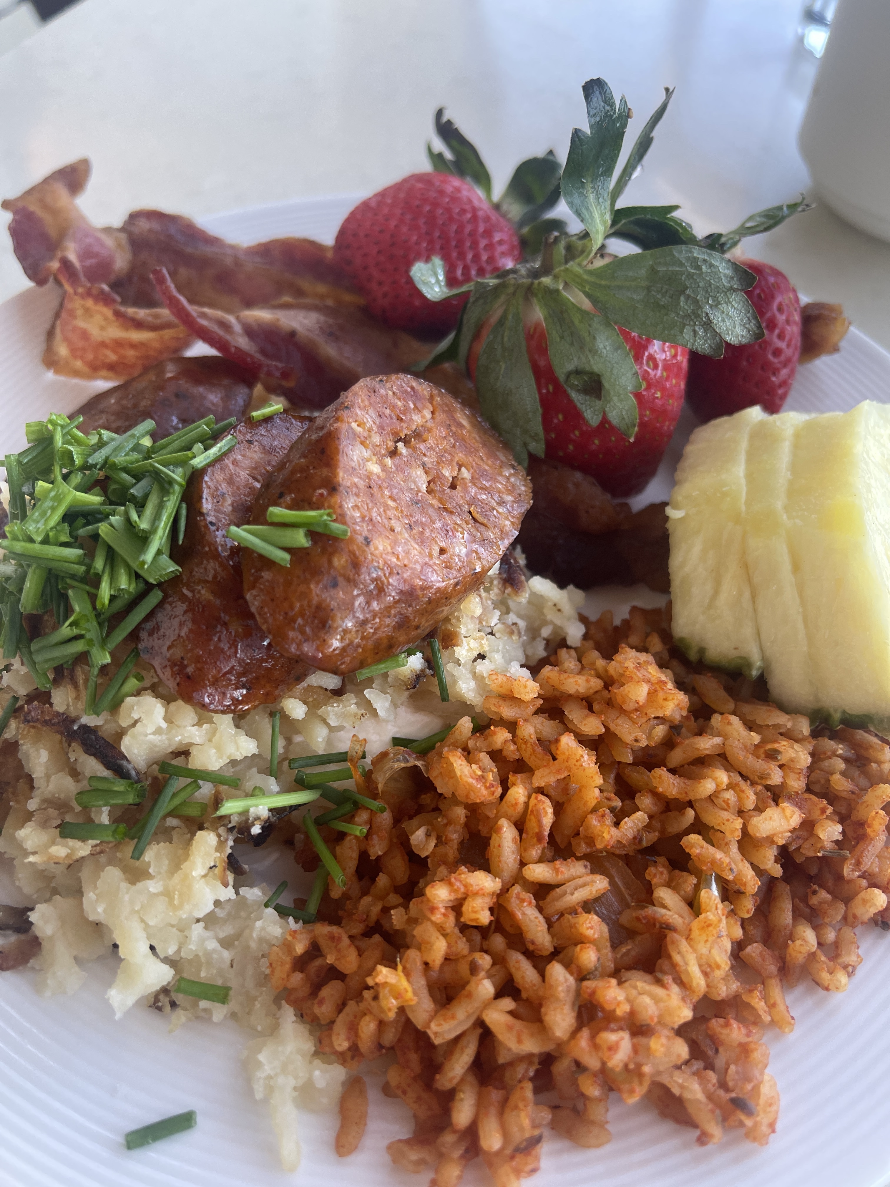 The minute we pulled up at MSP airport (driven by the amazing Abdulla, referred to us by friends Christie and Jim. Let me know if you need his number for your driving needs!), a wonderful airport worker jumped into action. Seeing me wrangling multiple suitcases and Rich trudging along with his walker, he declared: “You need a wheelchair!” We didn’t even get inside to ask at the Delta desk for the one reserved for us. The MSP staff took charge, chauffeuring Rich and helping me get everything to the front of the check in line. (FYI: being physically challenged DOES have its perks: we went to the front of every line in every airport in all three countries, from check in to security to boarding to customs. Nice!). After we were checked in, we were escorted through security (thank you Clear — always worth the subscription fee IMO), then had time to enjoy the PGA Lounge (courtesy of Priority Pass, a great perk we got with the Chase card — thanks for the tip, Thrifty Traveler!). We asked our escort what to do when it was time to head tot eh gate, and she assured me someone would meet us at the lounge, and they did. Our escort was going off duty, but came with a coworker to make sure we were cared for correctly. Wow: mad props.