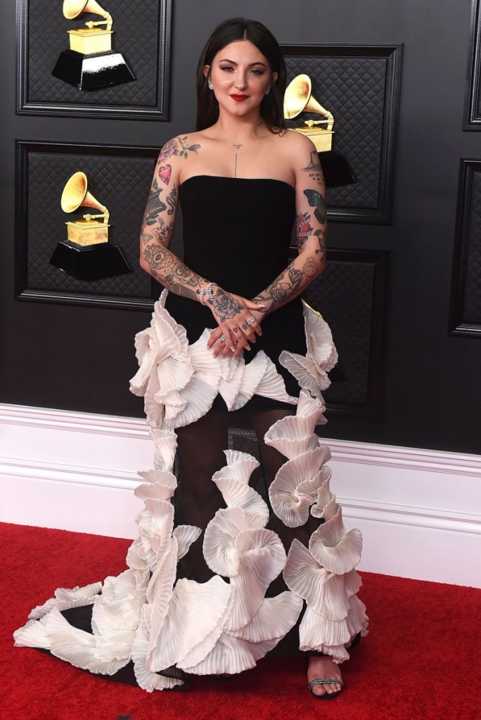 Nian Parker (in silver) looks like a medieval knight in a ll that chainmail. Mickey Guyton looks more like an Oscar than a Grammy, but I’m not complaining. Those shoulders made the dress fresh. And I don’t know what the rest of the outfit looks like, but from this angle, Keltie Knight did it right.