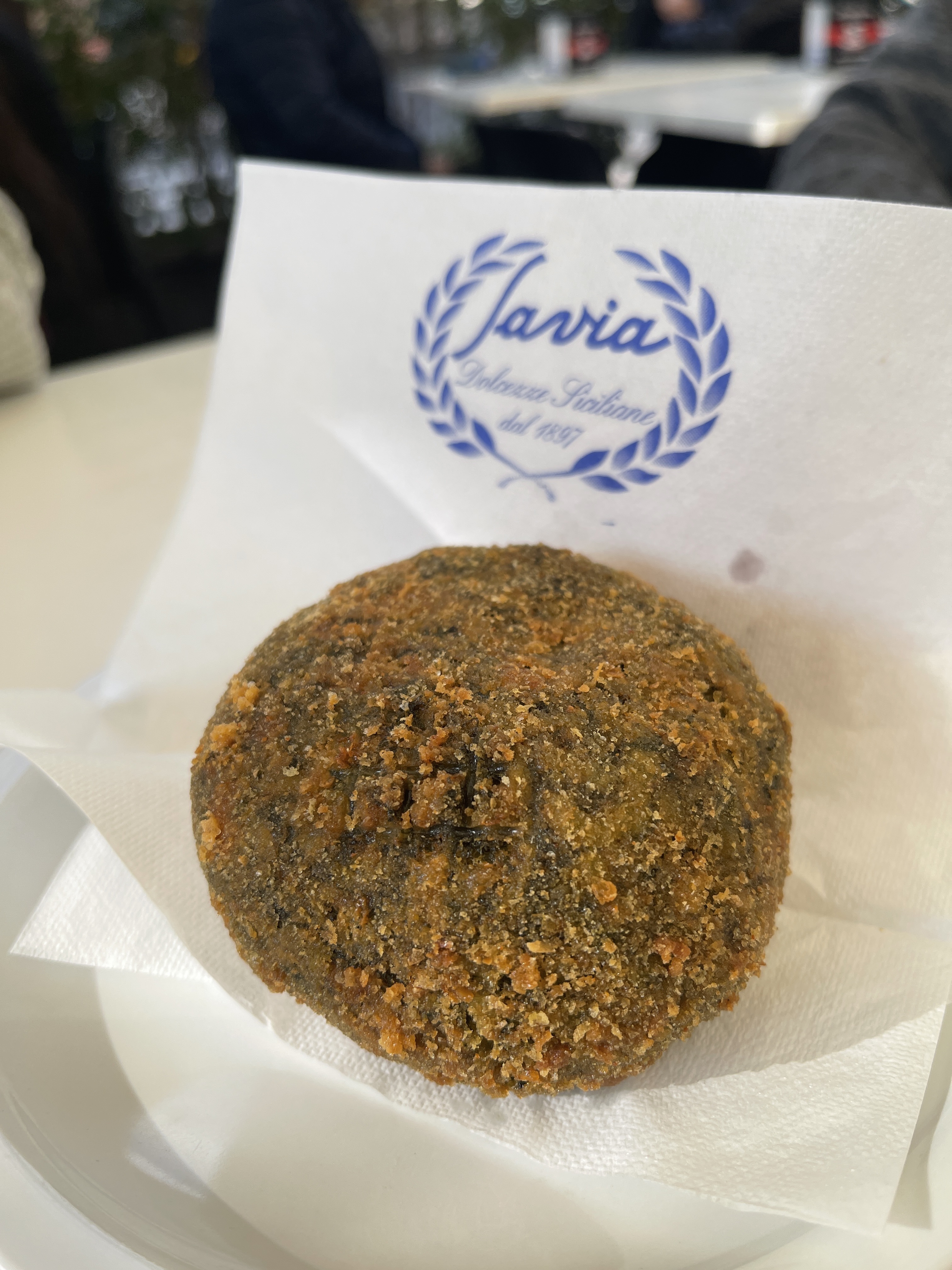 After breakfast, we met Mario, who was to be our guide (and friend) for the next few days. We were doing a walking tour of Catania. We met the kids at a café, where Mario plied them with espresso and arancini, the amazing fried rice balls native to the area, as they had not been privy to the luxurious hotel fare. Fortified, we set off.