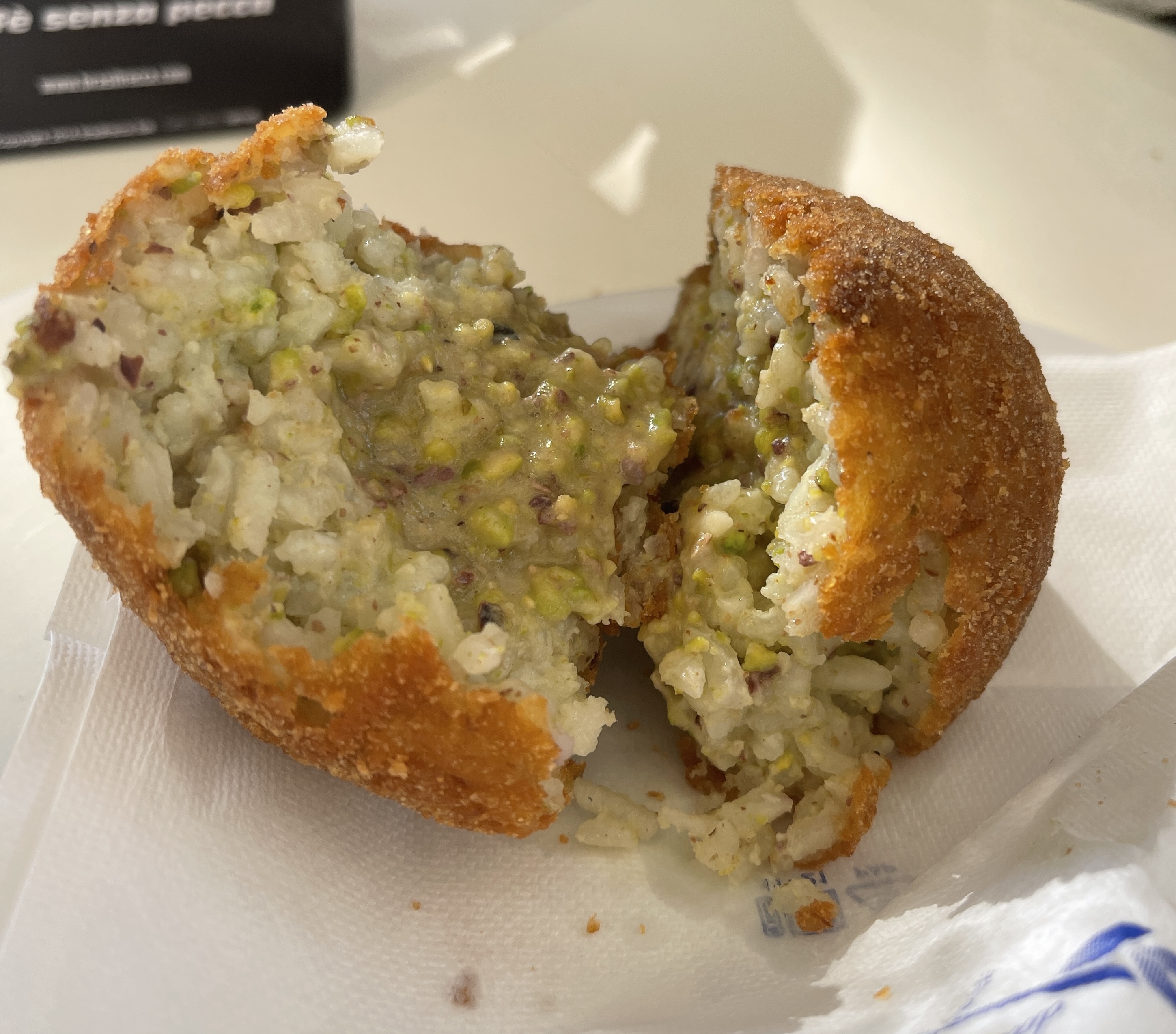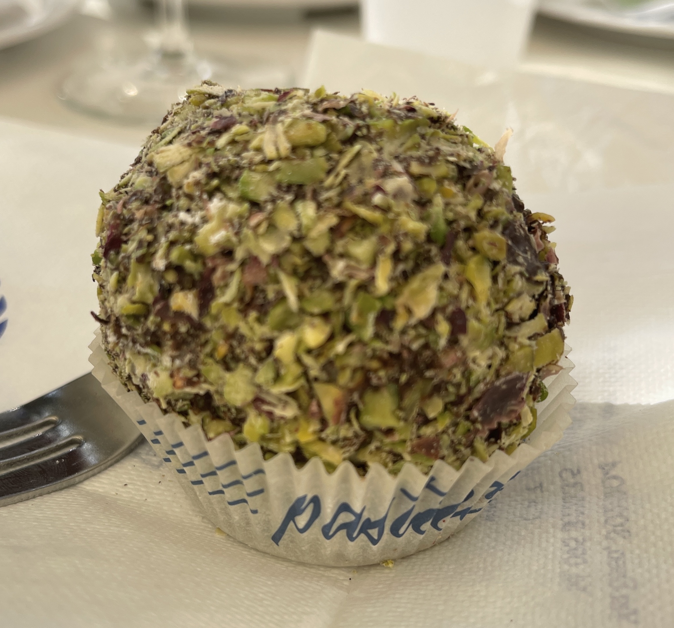 Our last stop on the tour was at Savia, where Mario treated us to more arancini and pastries — and wine, of course. Mario had “American prosecco”: Coca Cola.