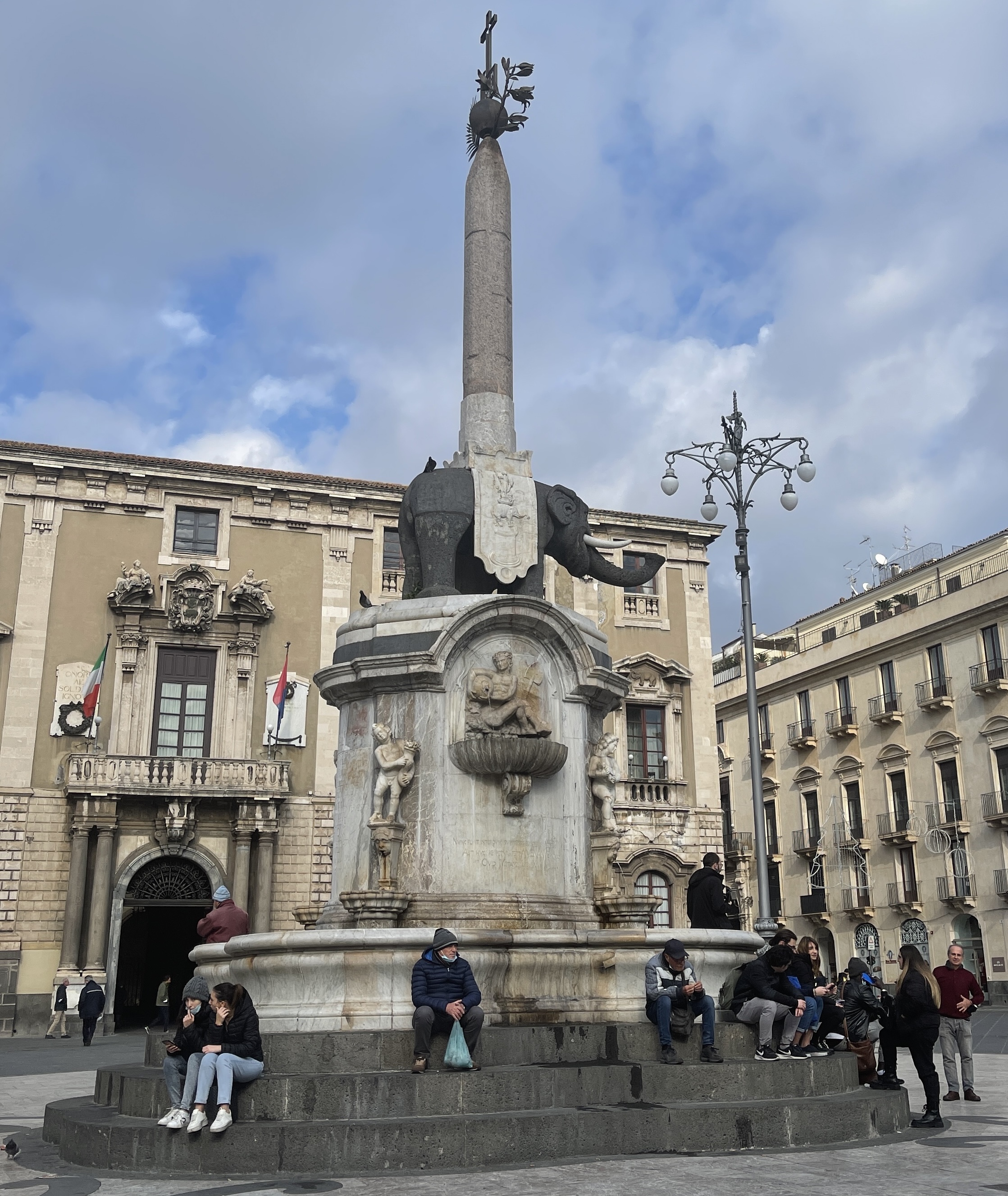 So about that history lesson! Sicily has been inhabited for 10,000 years, and, during that time, has been settled or ruled by many dynasties, including the Greeks, Romans and Bourbons. All over you see the influence of these cultures and all the others around the Mediterranean. The Turks were in charge for awhile, and during the Muslim rule of the 9th through 11th centuries, Catania became known as the city of the elephant. Why? There is a black lava stone elephant fountain (topped with an Egyptian obelisk) in the main square. U Liotru, as it is called, is the city’s symbol. Was there an elephant on the island? Maybe!