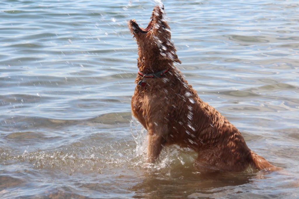 Monte is the handsomest boy, but he has never been a big stick chaser. He’d rather catch water in the air, or the occasional rock. He’s 14 now, and fighting cancer, so we were happy to see him enjoy himself!