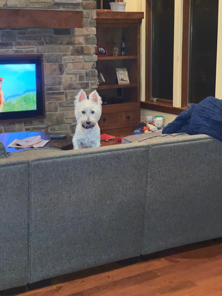 Westies are like crack to some people. I never understood it, but I do know. While she is not my “style” of dog, Ebby is cute and loyal and funny. She wants nothing more than to be near me, preferably cradled in my arms like a baby. Her little woo-woo voice is a hoot, even if I don’t always know what she wants. And when she starts moving, scampering is the only way to describe it!