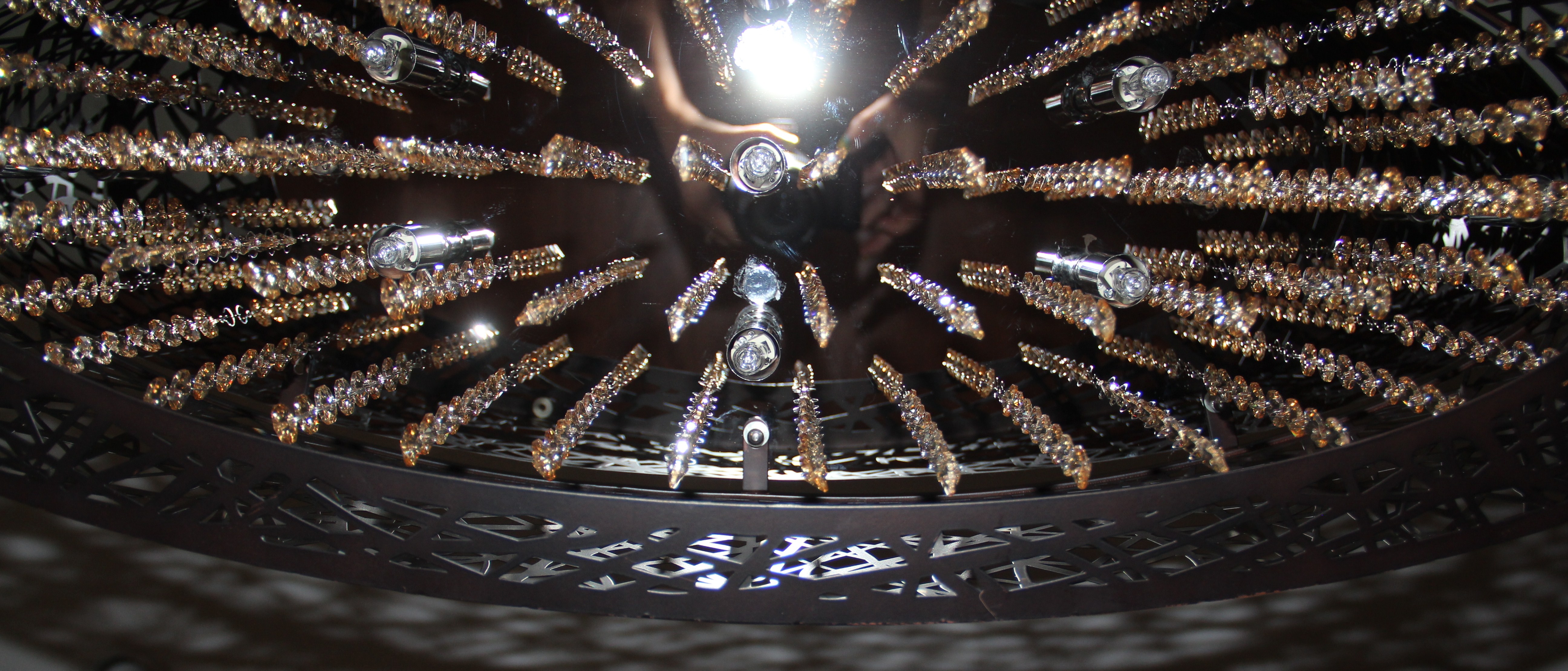 Picking out the light fixtures was tough — so far it has been the most exhausting, simply because there are so many options online! Created an order today at Cartier Lighting with Susan, who really helped me out. For example, we wanted some fun, flush-mounted lights covered with crystals in the master closet. Susan pointed out that while they would put off good light, the kind of light (wavy) wouldn’t really be great for picking out clothes in the morning. SO went with some basic, utilitarian lights instead. There are a few key, funky lights that we found online, and Susan is checking to see if she can get them for me. If not, I’ll order online. One is for the master bedroom: