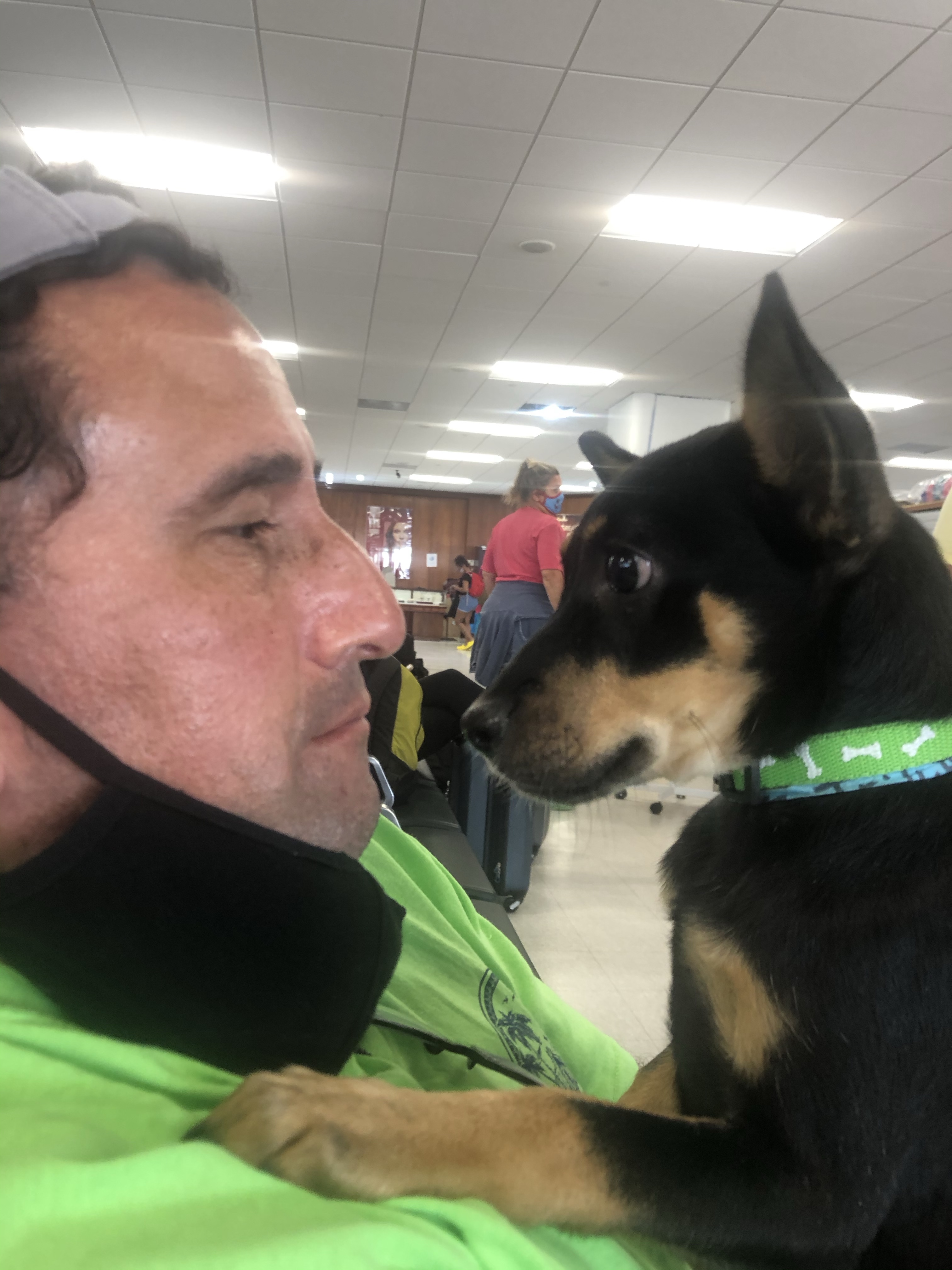 When you travel with a dog to be adopted, there are lots of restrictions. May depend on the airline, and each airline might have different restrictions and requirements depending on where the flight originated. For example: I needed animals small enough to fit in carriers under the seat in front to me; they couldn’t be too young; they had to be healthy. So Rhea worked her magic in the Caribbean, and Taylor finagled from the cold, bold North. And Tammy met me at the airport.