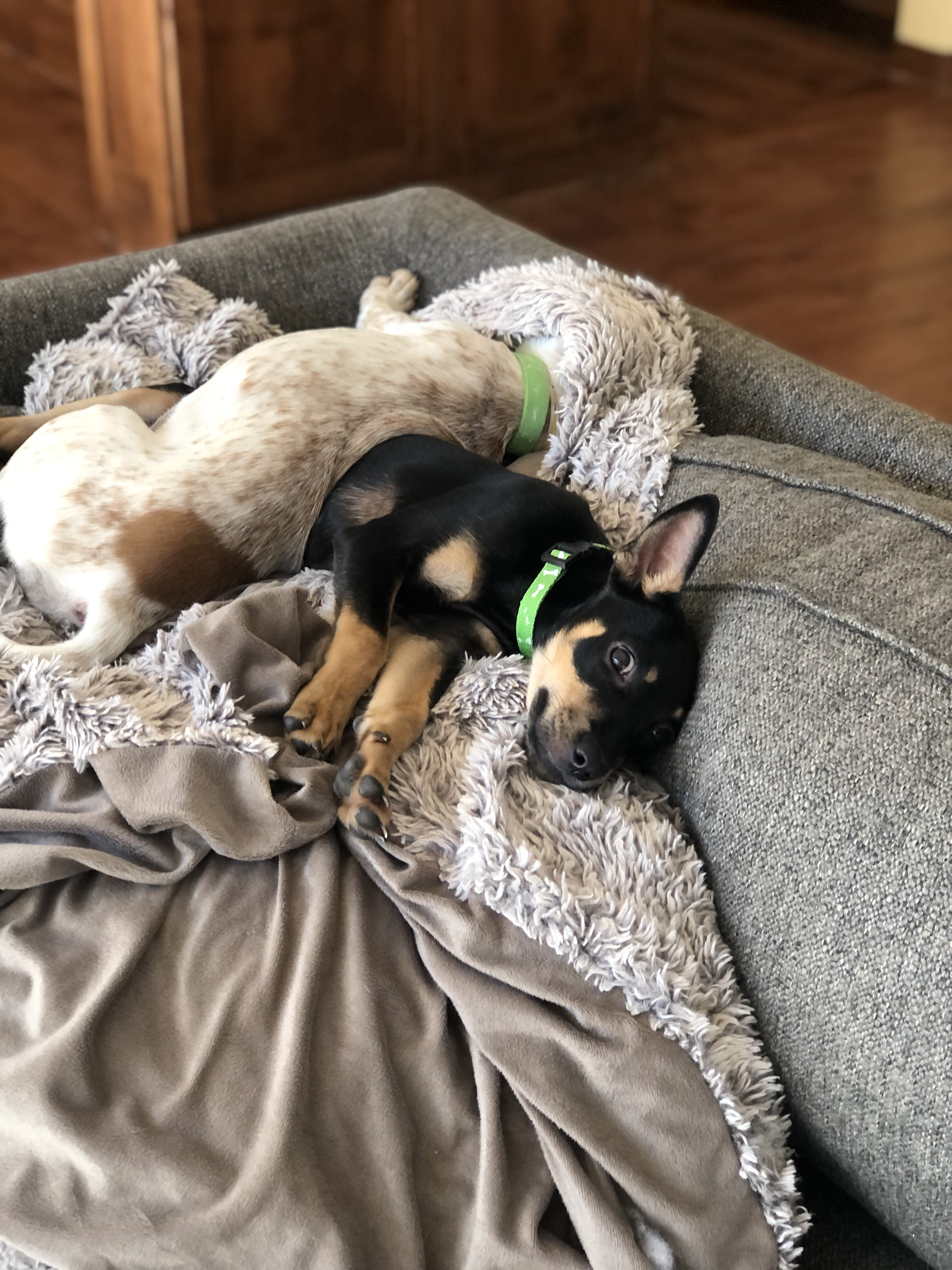 They started being naughty: dragging things from suitcases. Chewing slippers. Trillium realized she could jump on the couch. Tulip, a good 5 pounds heavier and three inches taller, wouldn’t get there for a few days. Taunting ensued.
