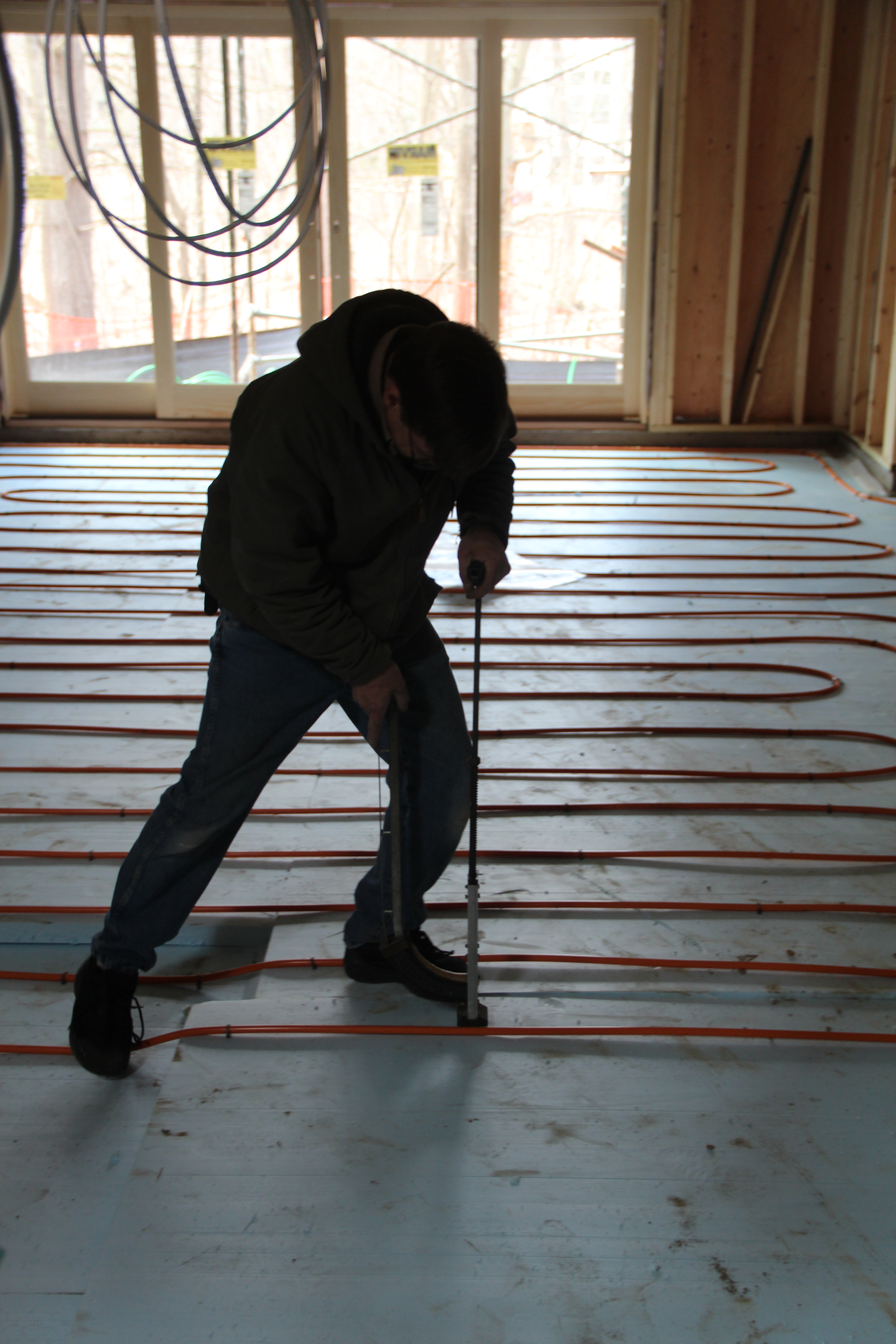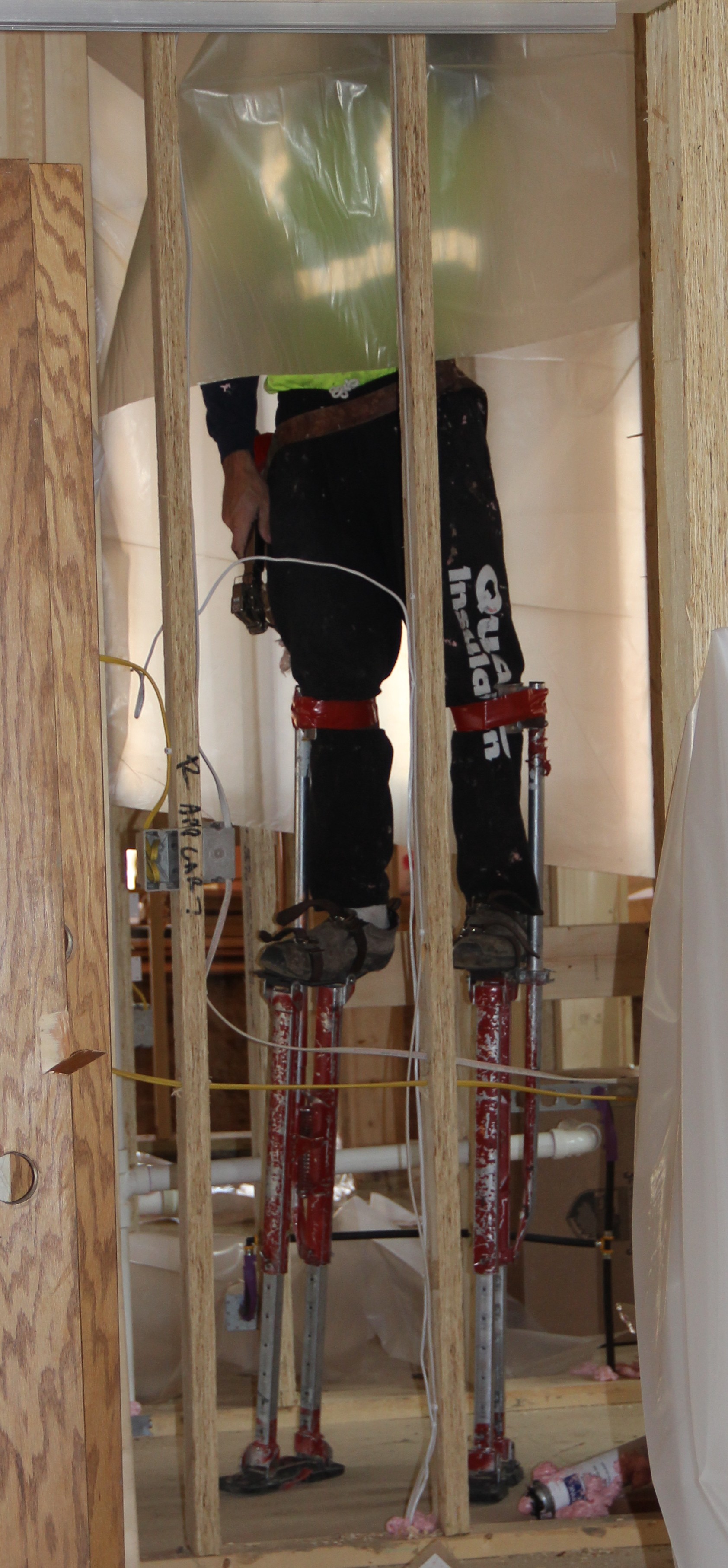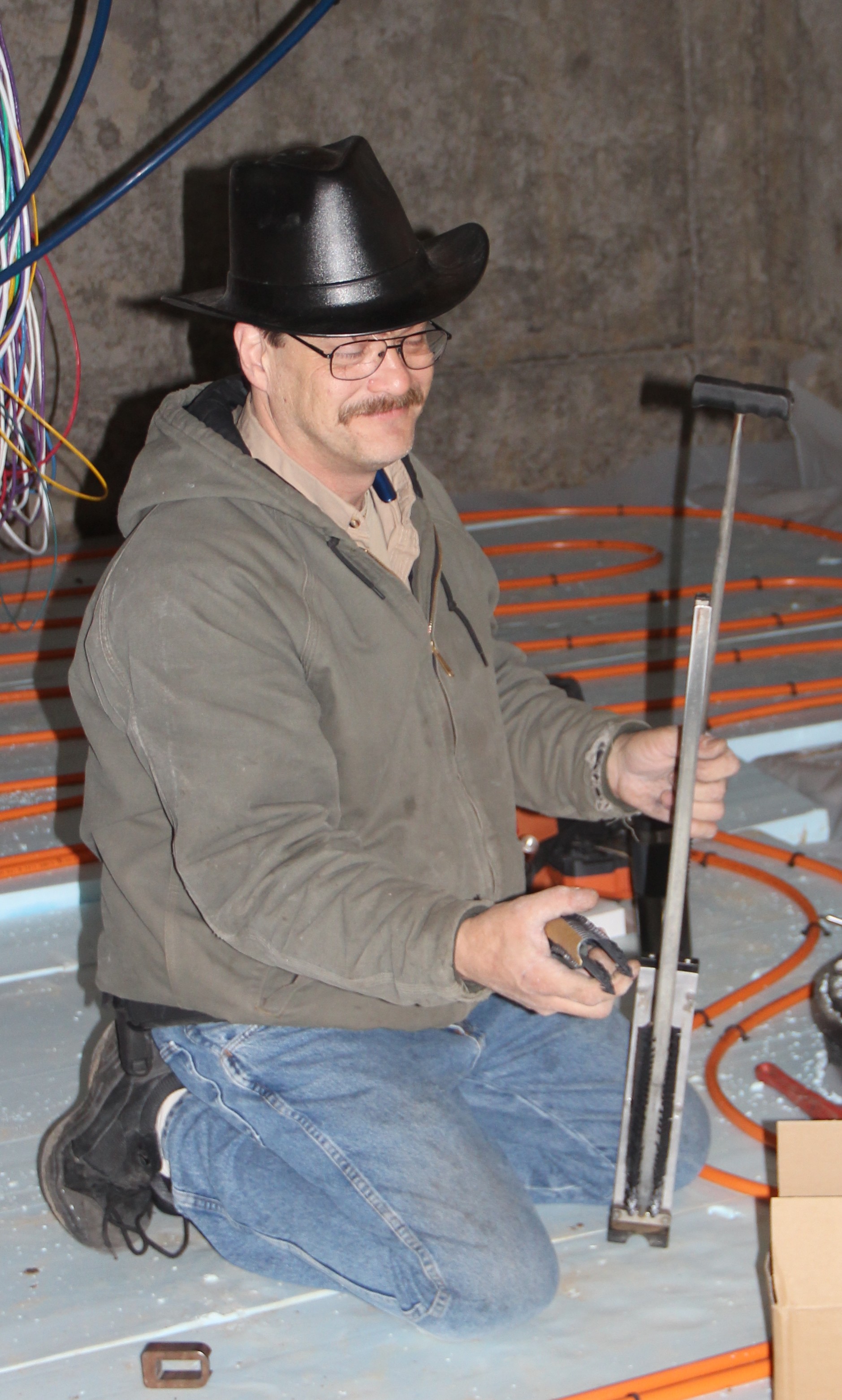 The system is very cool, and will certainly be welcome to my basement dwelling kids on frigid January mornings (or April mornings, as this year has shown). The wiring is roughed in, as is all the plumbing for upstairs. Super Bill is waiting for the interior doors to be finished so he can install them. We are doing things out of order on this job. Normally, you drywall first then install doors. But we are doing rounded corners, not square edges, so drywall has to be done around the doors.