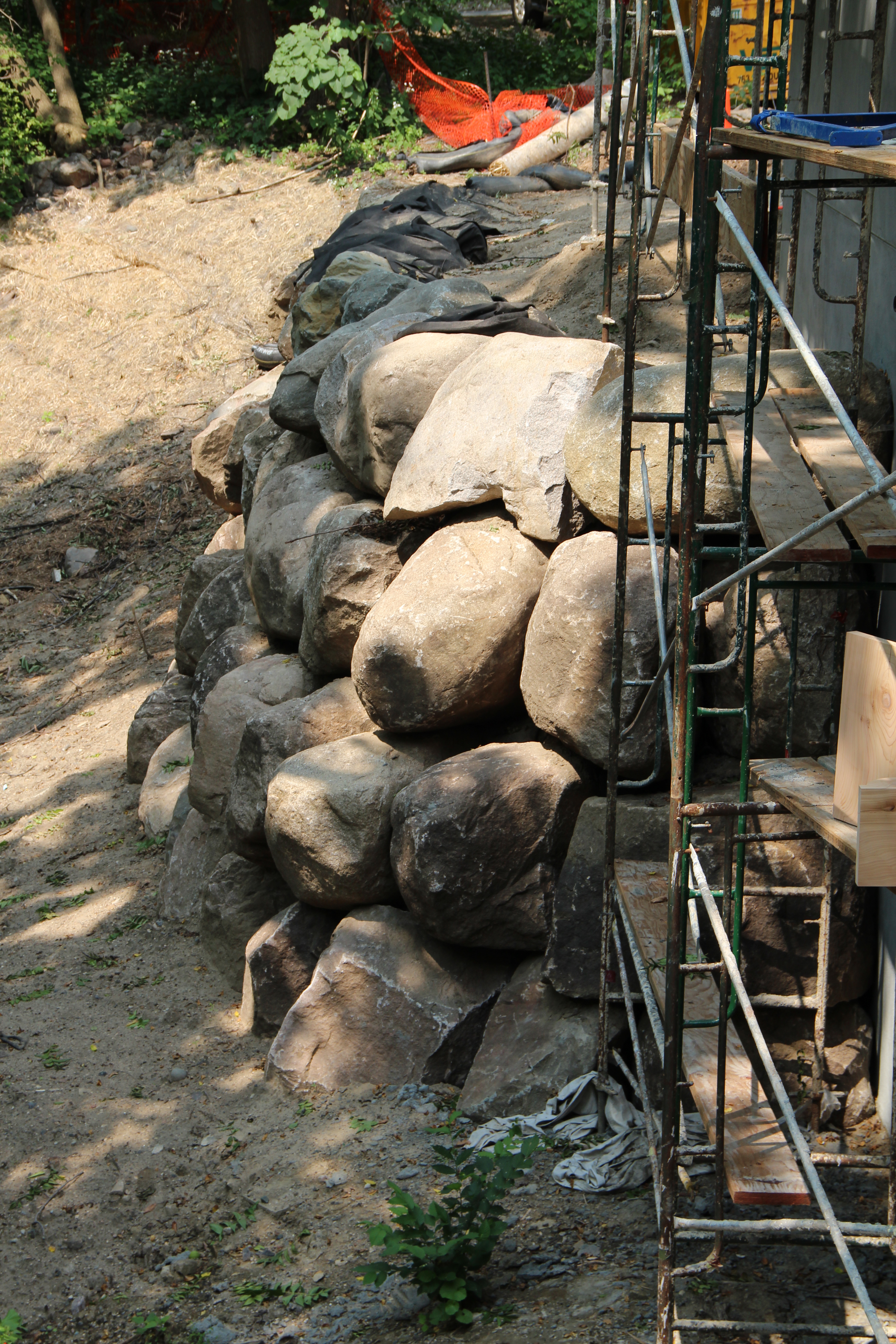 These boxes will be recessed into the rock, and will eventually become candle niches in the fireplace.
