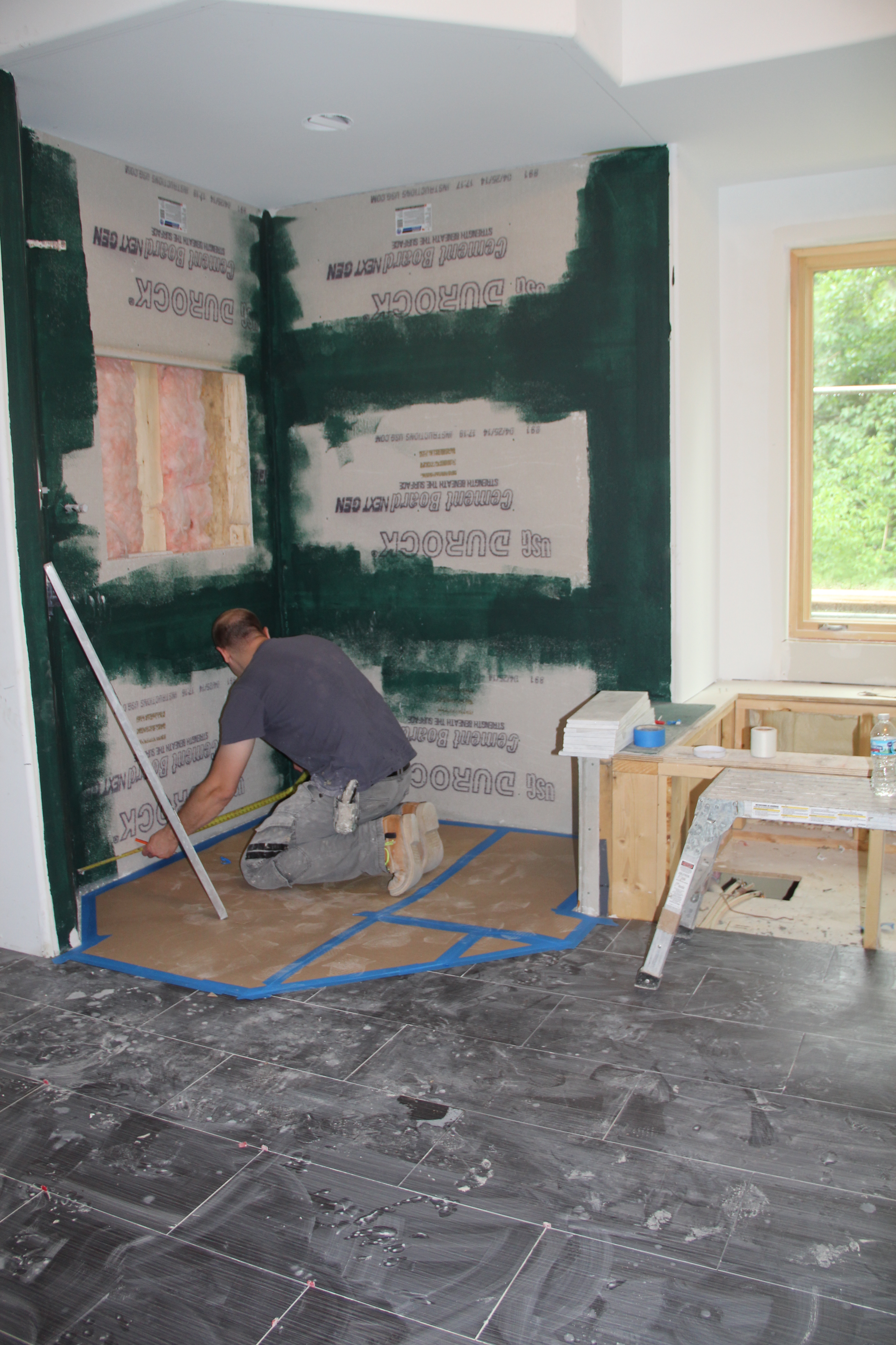 So now I am back to doing my part on the Walden house. Meanwhile, Super Bill has been cracking the whip and a lot is getting done. The infamous retaining wall is done (Bill says it looks like a fleet of small VWs stacked back there). The tile floors are almost all done, which is so exciting! Personality is starting to show! They added an amazing light-tube to my pantry/office. It changes the whole feel of not just that room but the adjoining kitchen and great room with the way it brightens things up. Most of the rooms have been primed, which I love. The girl was not thrilled at the main color when she came in today, as she said it reminds her of our current home (that’s because it is the color of our current basement, which I adore). Her room is her business, and she is pumped by the changes, from the tile and tub in the bathroom to the coral primer on the walls. My husband freaked out when he saw it and warned her her room was orange. Guess we can’t please everyone!