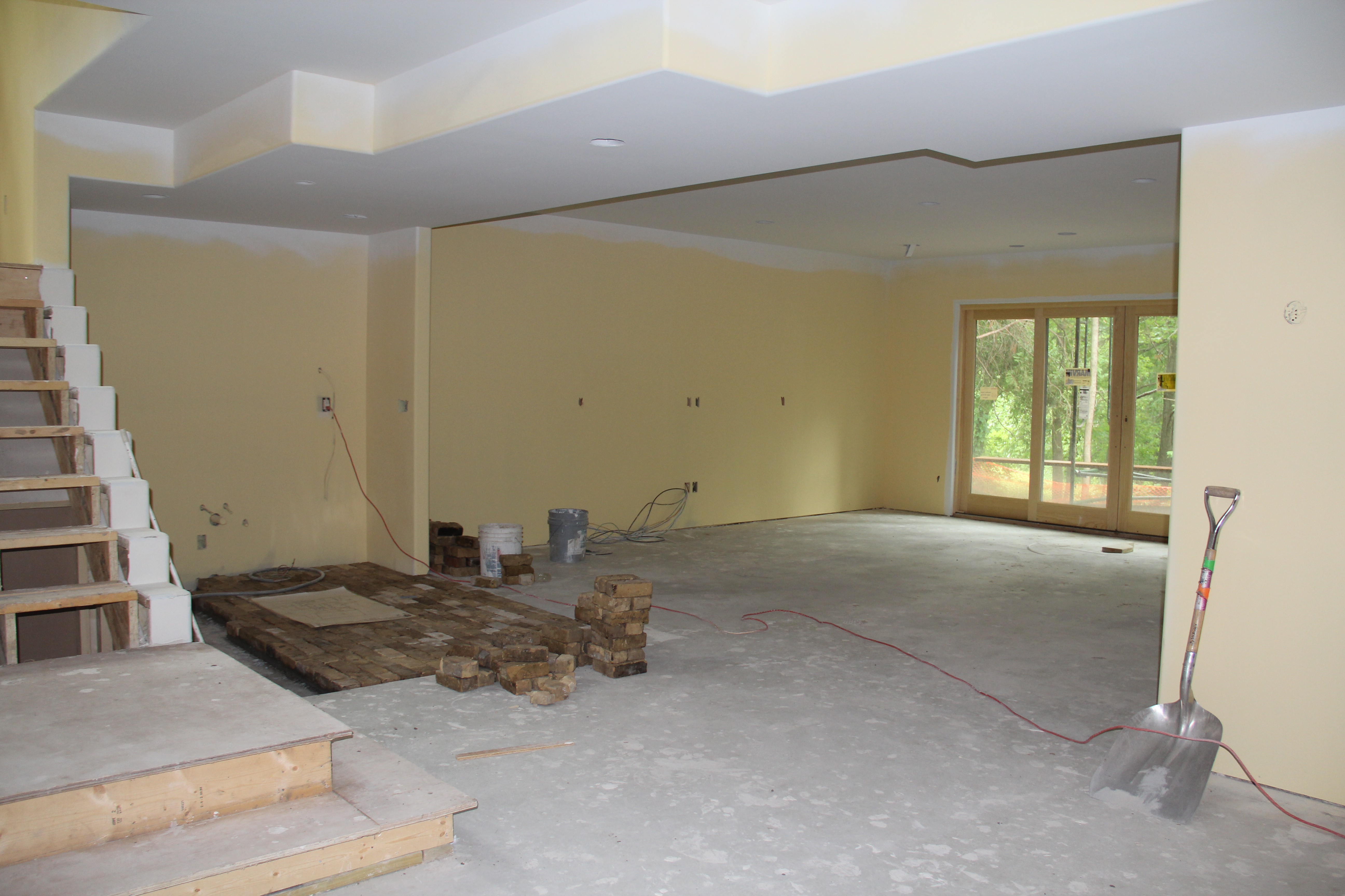 They have started installing the brick floor in the bar. You may remember these are the bricks from the original house on the lot. I am so pleased to be honoring the past this way!